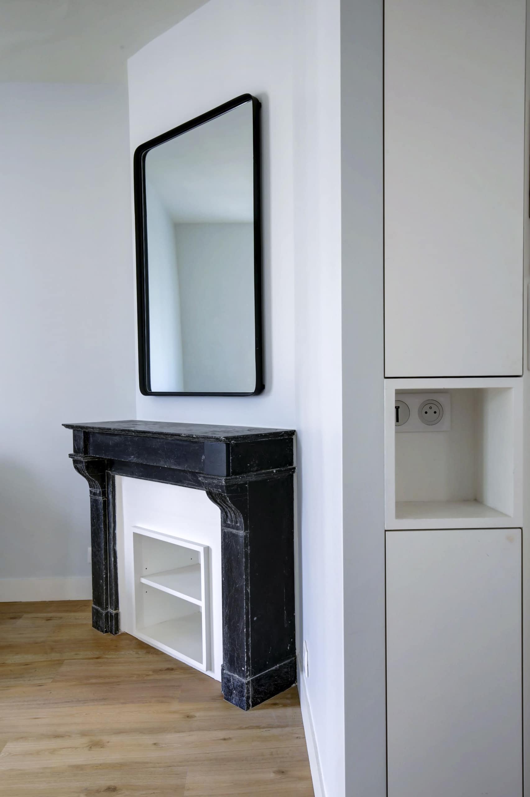 Rénovation et aménagement d’un appartement (Paris 2ème). S’agissant d’un investissement locatif en meublé, le réaménagement de cet appartement familial a été conçu “clés en main”, mobilier, luminaires et rideaux inclus, en optimisant le budget et la durée du chantier.